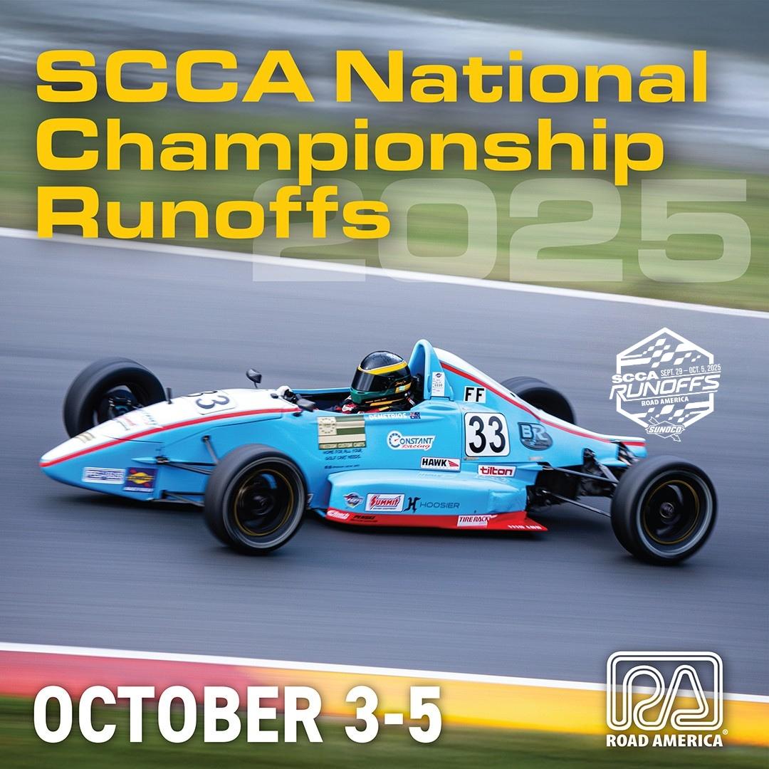 ELKHART LAKE, Wis., – September 23, 2025 – Road America will once again take center stage in American motorsports next week as the Sports Car Club of America® (SCCA) National Championship Runoffs® returns October 3-5. Nearly 400 competitors from across the nation are expected to participate, bringing the largest amateur road-racing event in the world to the storied 4.048-mile, 14-turn circuit.